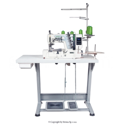 transportem dolnym różnicowym, elektromagnetycznym obcinaniem nici i automatycznym pozycjonowaniem igieł. Maszyna znana też jakokapówka albo renderka.Przemysłowy, trzyigłowy interlok